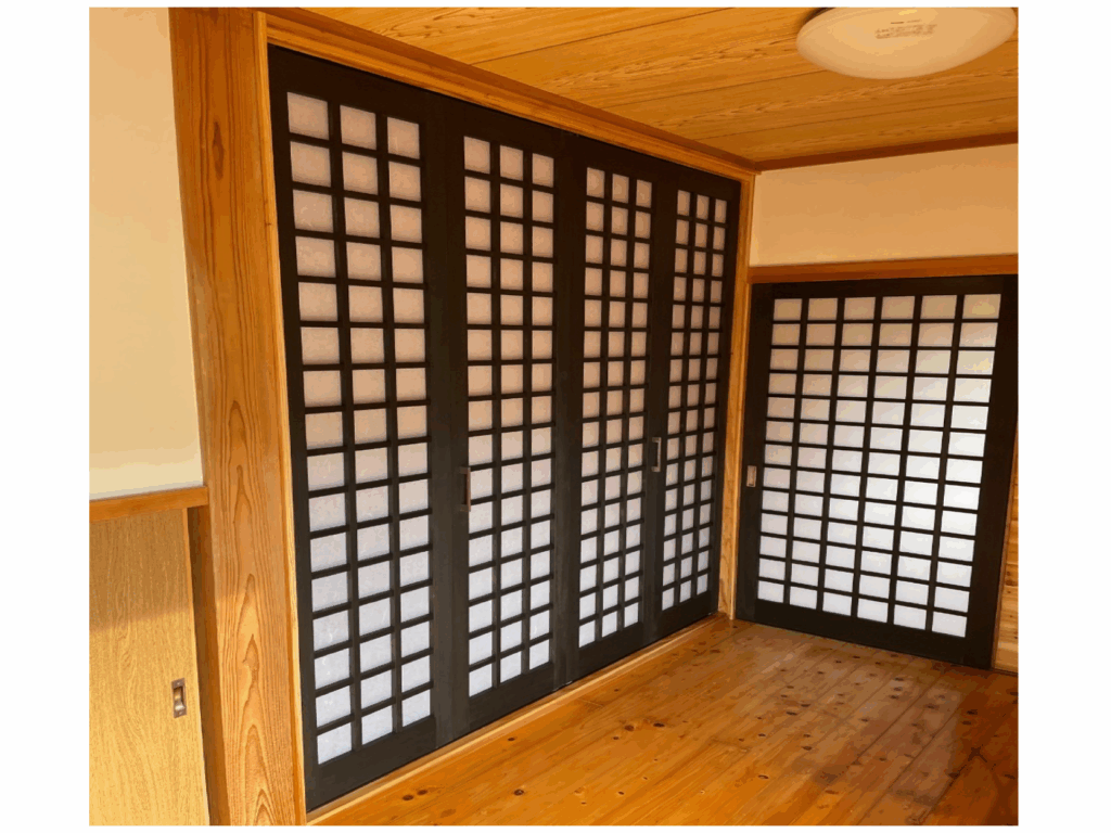 こちらは障子の枠を黒く塗装し、障子紙を貼っています。
